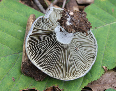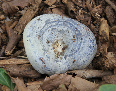 | 乾燥のためか以前に見たハツタケの様な明瞭な乳と緑変は確認できず。 きれいなマツ林などに発生するイメージがあったが、コナラ中心の林で、側にはウッドチップなどが有り、かなり肥沃な場所であった。 | |