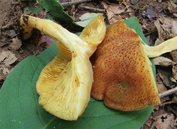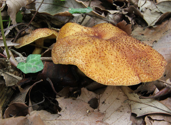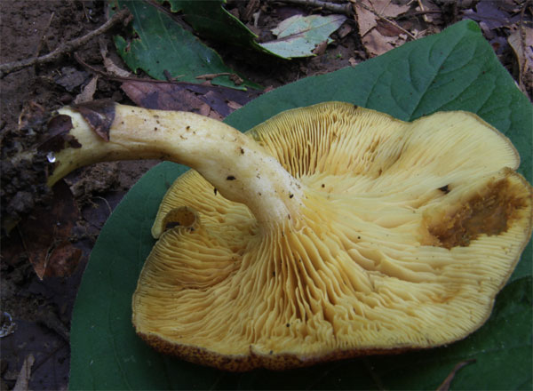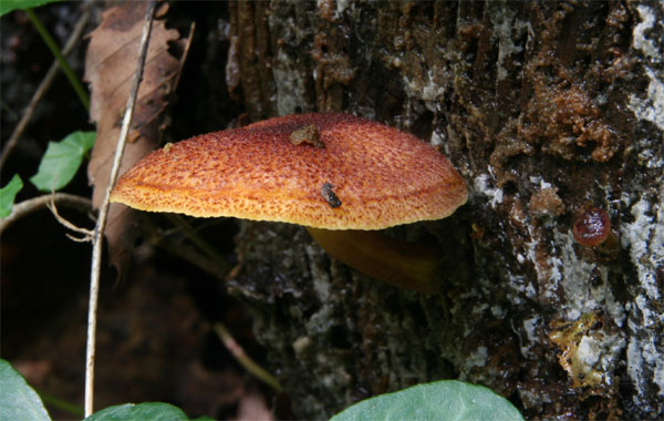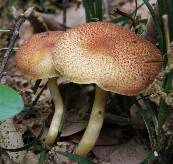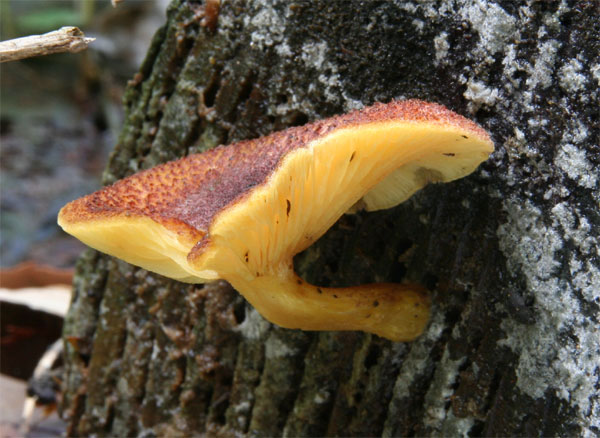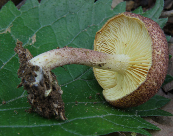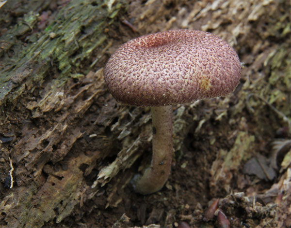 | 傘の鱗片はあらくささくれている 埋もれ材上に発生している |