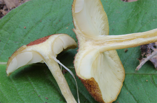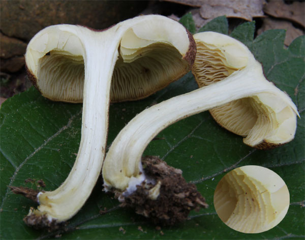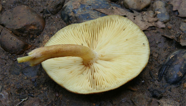 | 図鑑ではヤブアカゲシメジは柄やひだ縁部は微毛状とあるが見当たらない 直生〜湾生でもない |