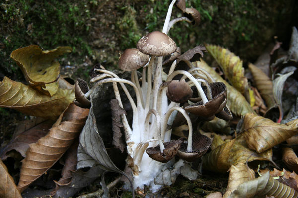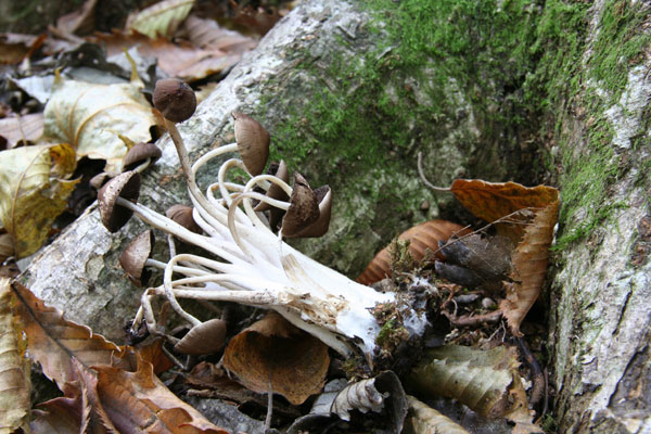 キノコの発生が非常に少なかったこの日に、落葉樹の大木の根元で唯一発生していたこのキノコ、撮影者にとっては屑どころか、宝のキノコとなった千本屑茸。