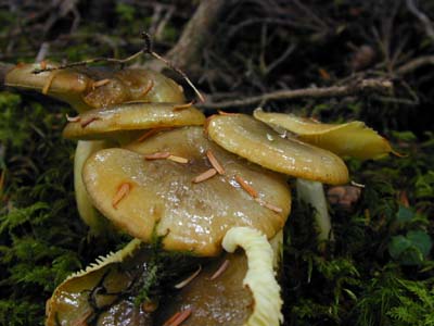 | 晩秋のキノコには、このようなぬめりで、結氷を防いでいる種類が多い。 | |