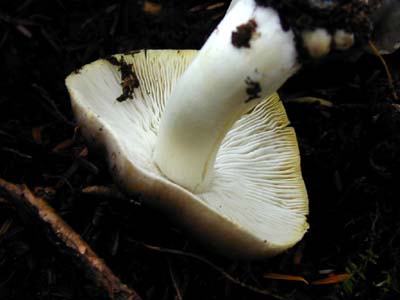 ひだの縁部が黄色味を帯びている。
