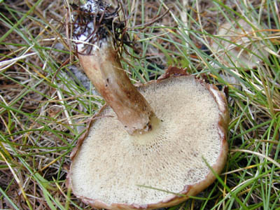 カラマツ林の縁など日当たりのよい場所で見かける。いつも汚れているものしか見ないので、食べたことはない。多分 きれいなシロヌメリイグチなんてないのかもしれない。