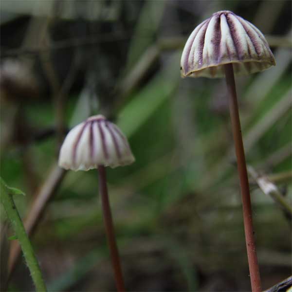 | キシメジ 科 ホウライタケ 属 Marasmius purpureostriatus | |