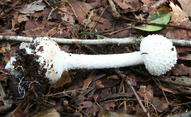 柄の上部に膜質のつばあり。 基部は篇球状に膨れる。