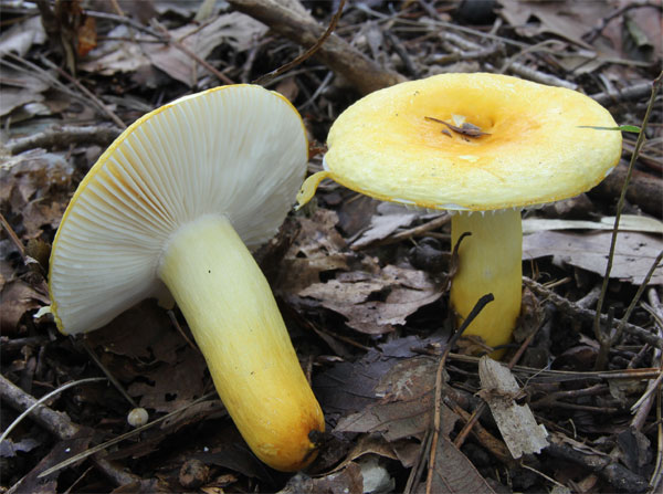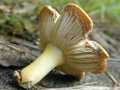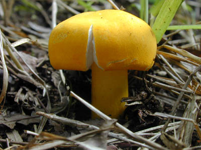 澄んだきれいな黄色のキノコ。ベニタケ科の同定は難しいが、この色のハツタケは、これ以外になかった。ラッキー。