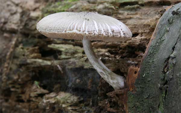 | 乾燥気味の成熟した個体、放射状の繊維模様が傘と柄で顕著 | |