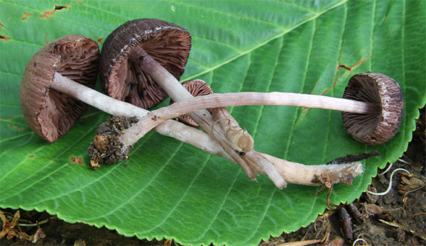 ひだは暗紫褐色後に黒褐色