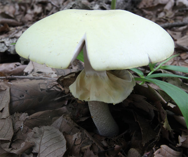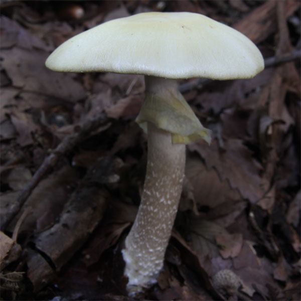 傘は中から大型で淡黄色 絹状のつやがある