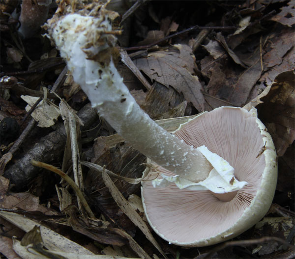 ひだは初め白色後に暗紫褐色