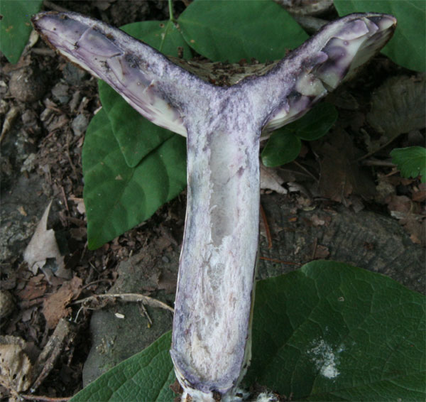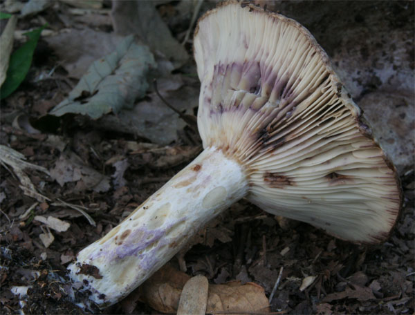 乳液は白色後紫に変色 柄、肉とも傷つけると紫変 柄にはクレータ