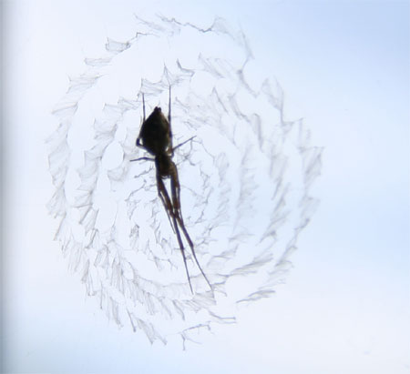 このクモは巣に隠れ帯(白い帯)を作ります。