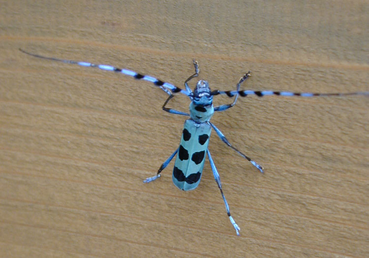 比較的めずらしいカミキリであること後で知った。ネットの写真を見ると材木等の表皮が剥がれた場所で撮られているものが多い。 狭山丘陵辺りにはいないのかな?