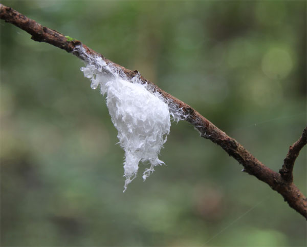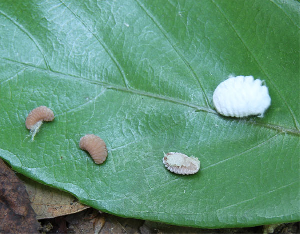 | セミヤドリガの終齢幼虫の繭作り ↓ |