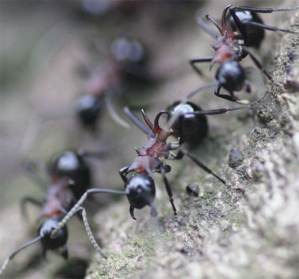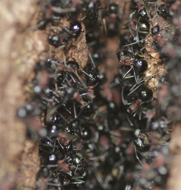↑ コナラの洞の巣に沢山のトゲアリが居た。