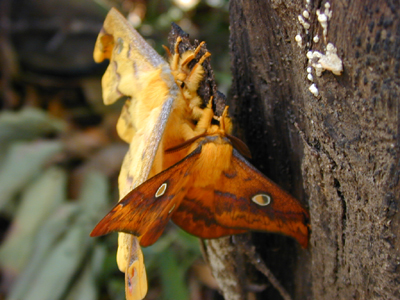 | 左が♂ 右が♀ 。 羽を広げると10センチほどあります。 | カップリングの最中 |