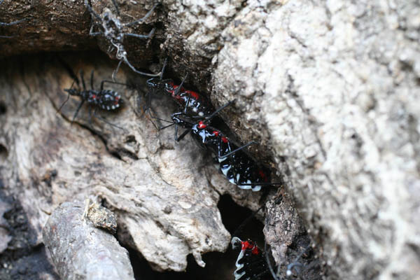 | 脱皮直後の成虫と洞の中では終齢幼虫が身を潜めています。 |