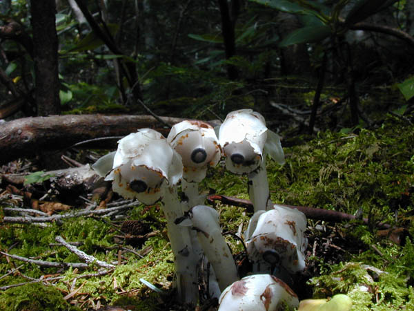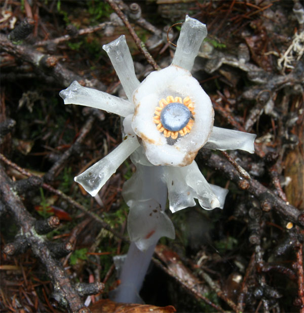 別名ユウレイソウ 目玉のおやじ? 葉緑素を持たず、光合成を行なわない、枯葉腐った枝などの有機物を吸収し栄養とします。似ているものに