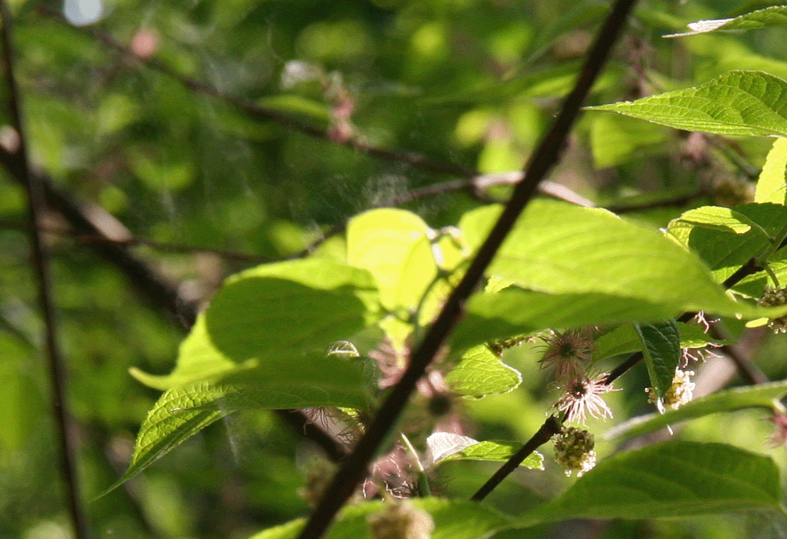| 風が少し止むと時々、たばこの煙を吐いた様な花粉を観察できます。(運が良ければ) ひたすら待つしかない。 | |