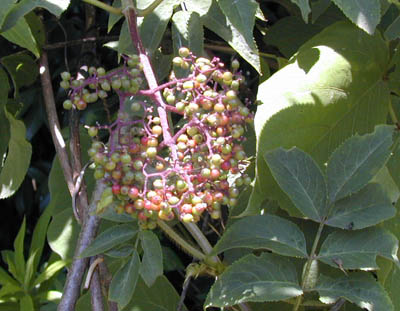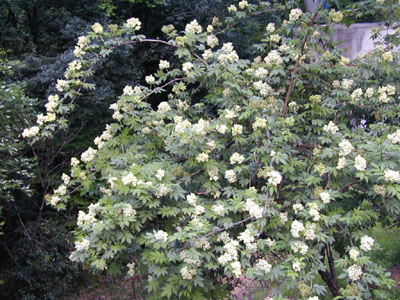 | 実 6月18日 | 芽には春を待ちかねたアブラムシが集まっている。この植物には、昆虫を誘導する花外蜜腺といわれる構造を備えているらしい。 |