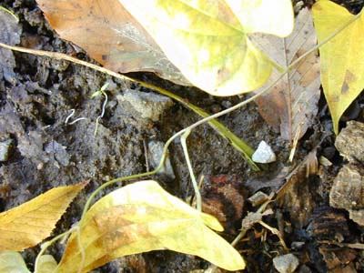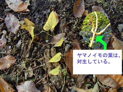 ヤマノイモの葉によく似ているが、芋は不味くて食えないらしい。オニドコロの葉交生しているが、