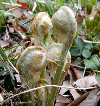 ゼンマイは他の山菜と比較してよく見かける。灰などを使ってあく抜きをし、手もみしながら乾かす。手間をかければ味が良くなると聞いた。